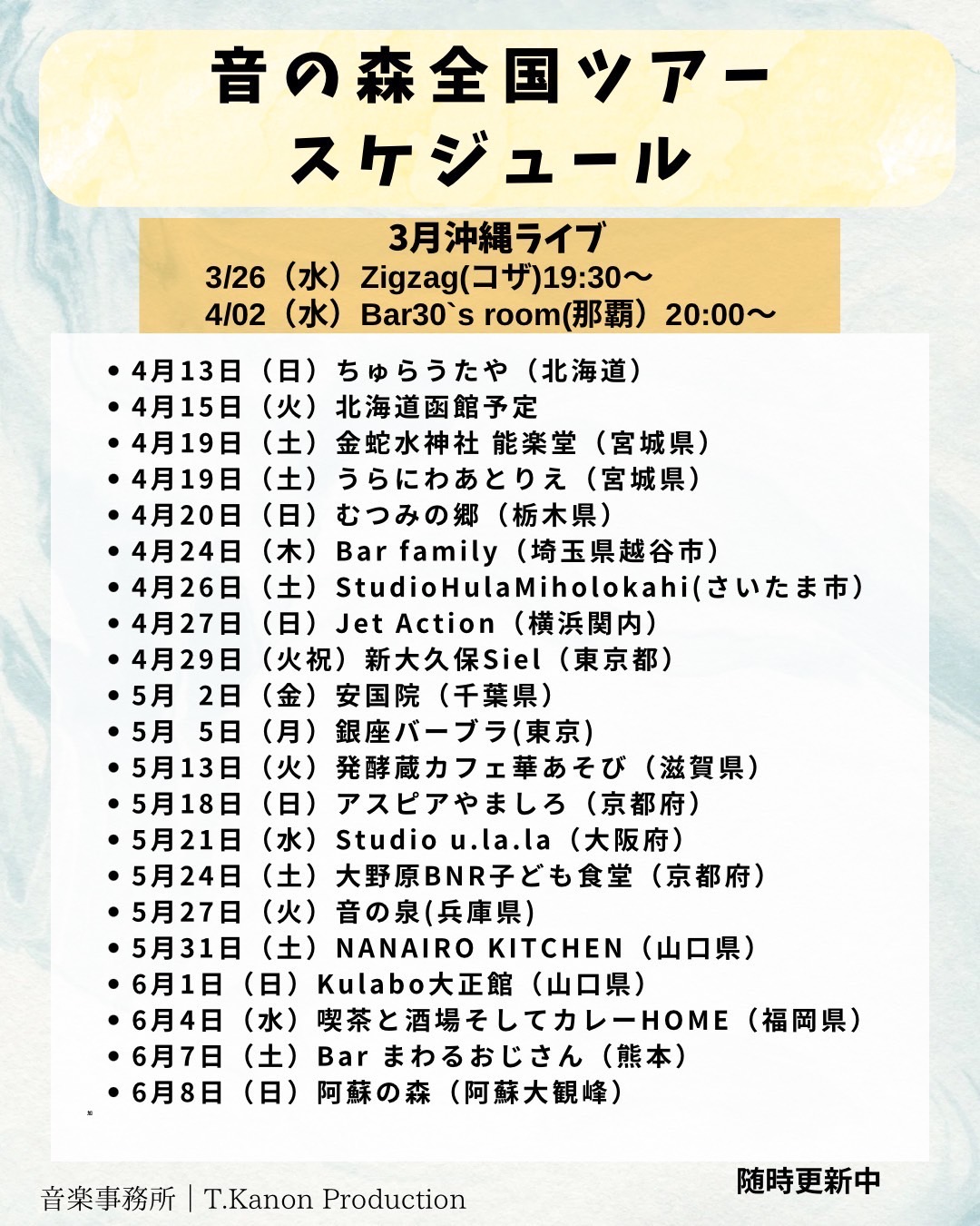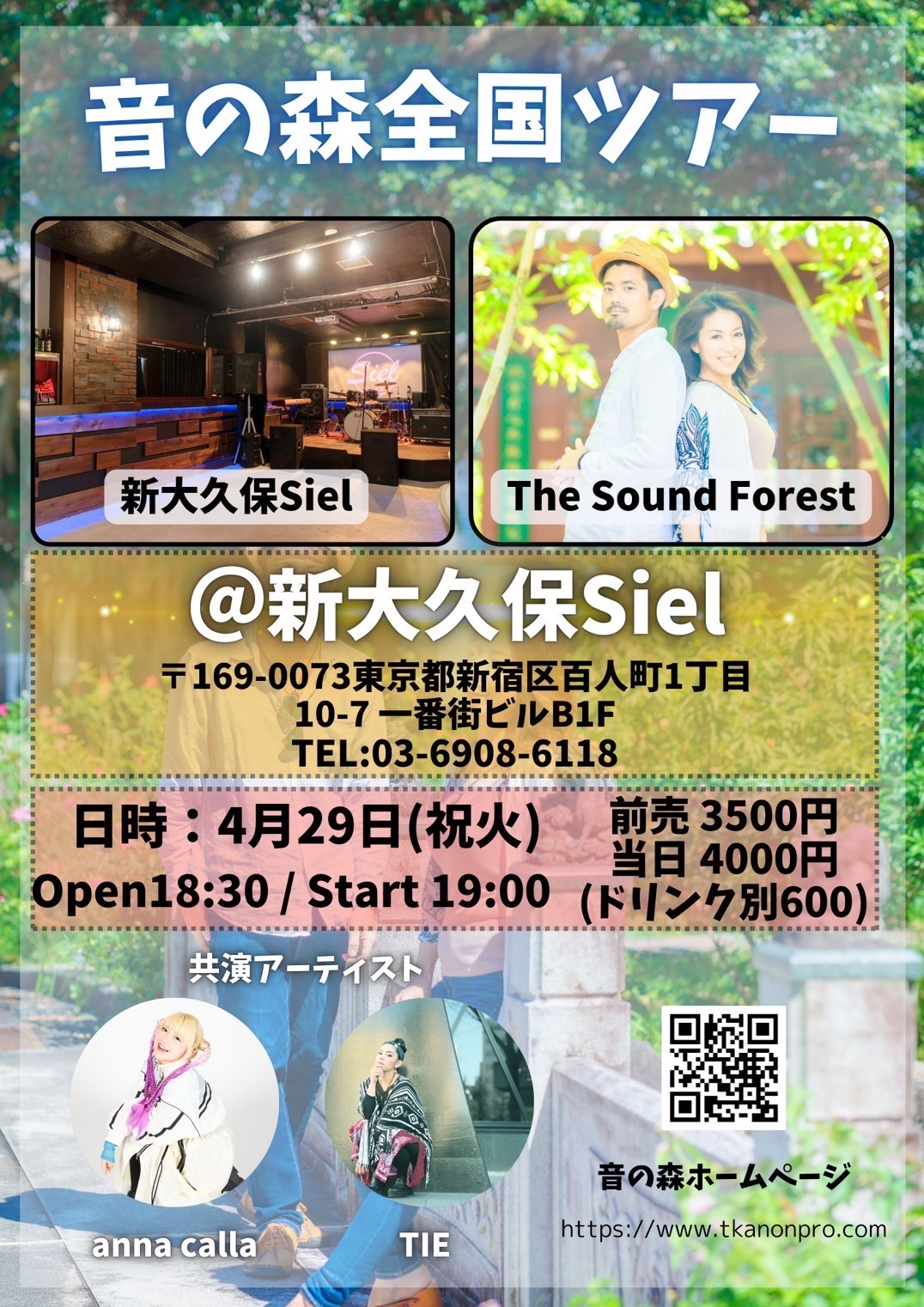 出演者 TIE anna_call THE SOUND FOREST(from沖縄) OPEN 18:30 / START 19:00 前売り3500円 当日 4000円 (ドリンク別600円)