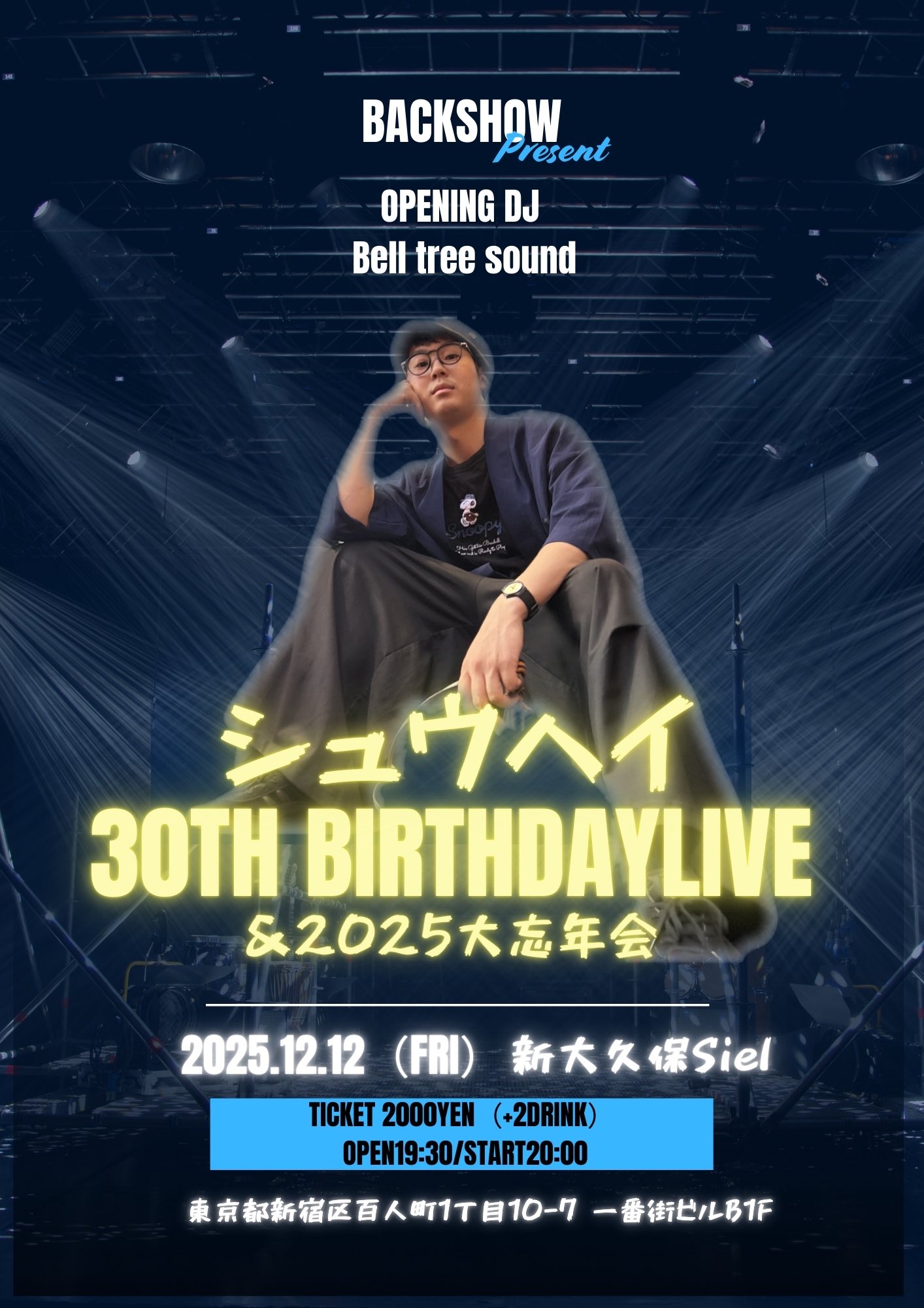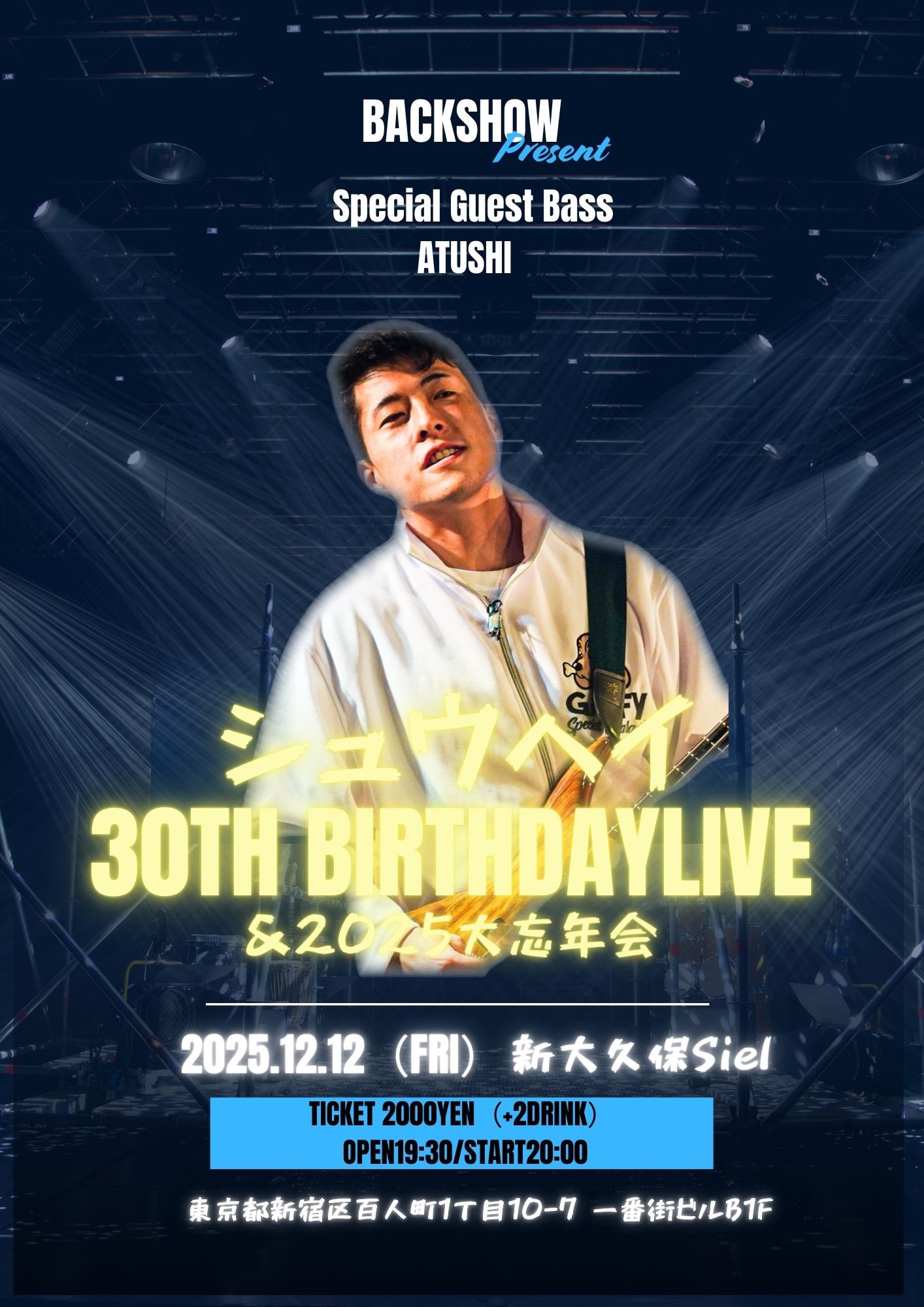 出演者 BACKSHOW シュウヘイ OPEN 19:30 / START 20:00 前売券(税込) 2,000円 2ドリンク1.200円